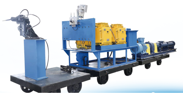 該裝置由高壓水槍沖洗車、總控車及泥漿泵和電纜車組成。